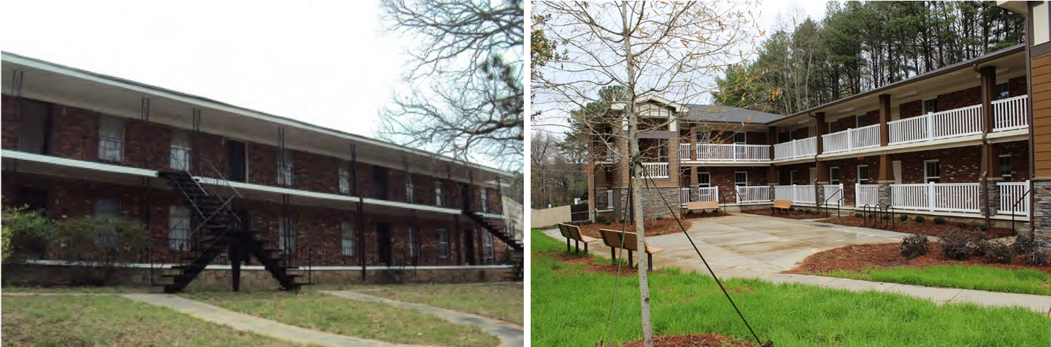 Exterior before and after shots of Stanton Crest Apartments. | Photo Credits: ANDP