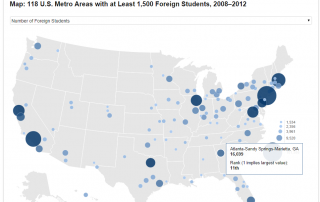 A report from Brookings uses a new database on foreign student visa approvals from 2001 to 2012 to analyze their distribution in the United States, finding: The number of foreign students on F-1 visas in U.S. colleges and universities grew dramatically from 110,000 in 2001 to 524,000 in 2012. Foreign students are concentrated in U.S. metropolitan [...]