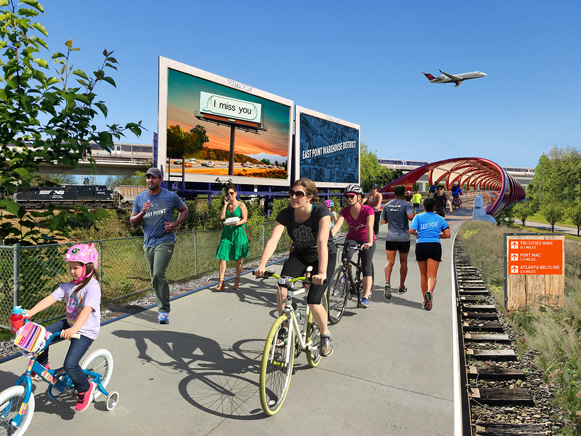 Concept of AeroATL Greenway Plan near East Point Exchange. Rendering Credit: SixPitch